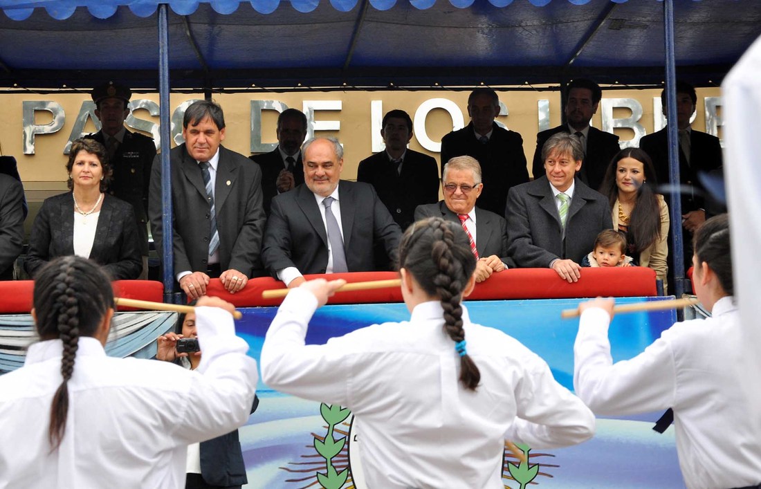 El Mandatario provincial encabezó la celebración de un nuevo aniversario de la fundación de esta Ciudad del interior correntino, y más allá de la amenaza de precipitaciones con la que se desarrolló el acto, concurrieron al mismo numerosos vecinos, integrantes de los establecimientos escolares de todo el Departamento, Fuerzas del Ejército, de Seguridad local y de la vecina ciudad de Uruguyana, que también envió a sus representantes diplomáticos, los ministros de Coordinación y Planificación, Eduardo Vischi; de Desarrollo Social, Federico Moulia, legisladores provinciales, el anfitrión el intendente Raúl Tarabini, su Gabinete y los miembros del Concejo Deliberante local, ex combatientes de Malvinas. La Banda de Música Vuelta de Obligado del Ejército Argentino tuvo a su cargo la ejecución del Himno Nacional y la musicalización del desfile. El Gobernador destacó la paz que impera en Libres, considerando que ello ayuda a construir una localidad en constante progreso.