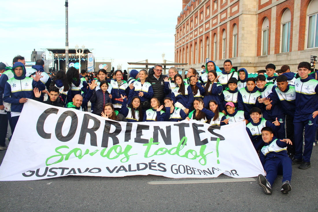 Un marco más que imponente, donde los atletas correntinos se destacaron con una enorme bandera con la palabra: “CORRIENTES”; y con la presencia de sus abanderados provinciales en el escenario central.